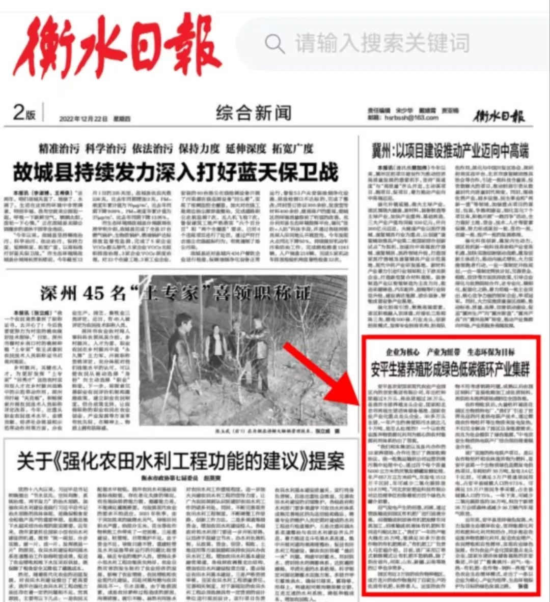 衡水日报刊发《安平生猪养殖形成绿色低碳循环产业集群》